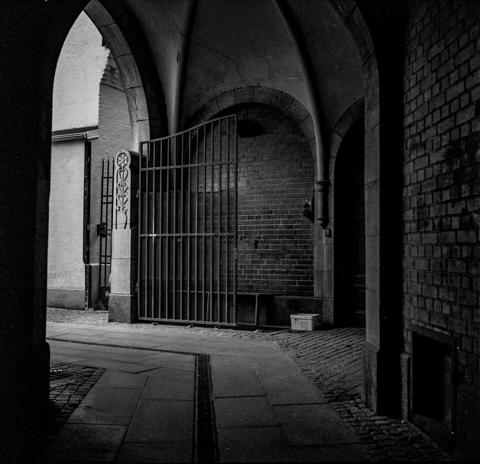 Men jag tyckte att det var utmanande att försöka få på bild. Bakre passagen till den gamla teatern Hippodromen (numera Malmö Stadsteater) fotograferat med Rolleiflex T och Ilford Delta 400 för några ... läs mer..